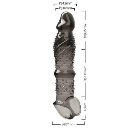 UMPS-07B Reusable Black Transparent TPE Vagina Stimulating Extended Penis Sleeve