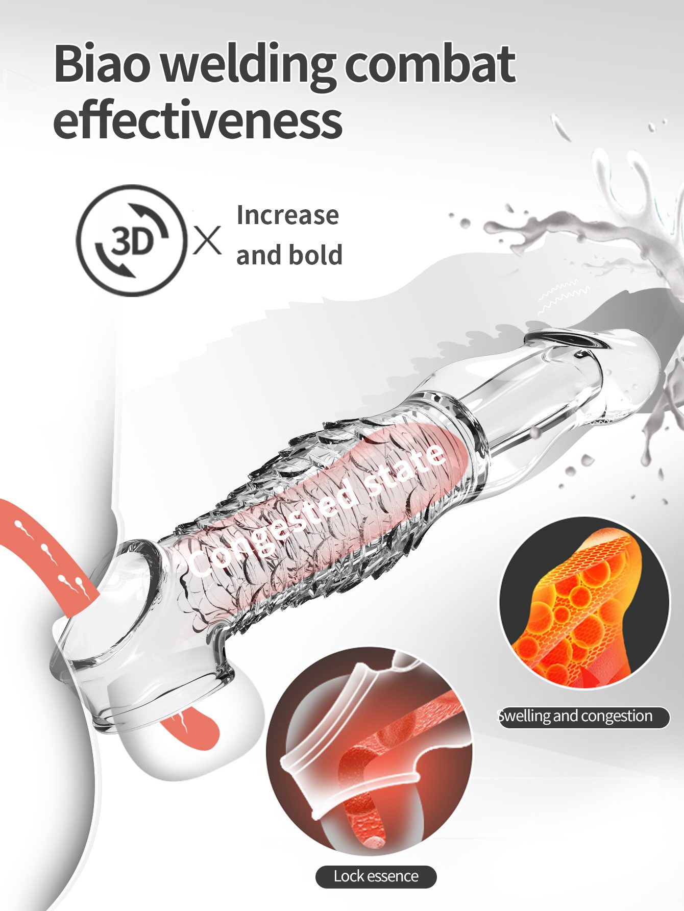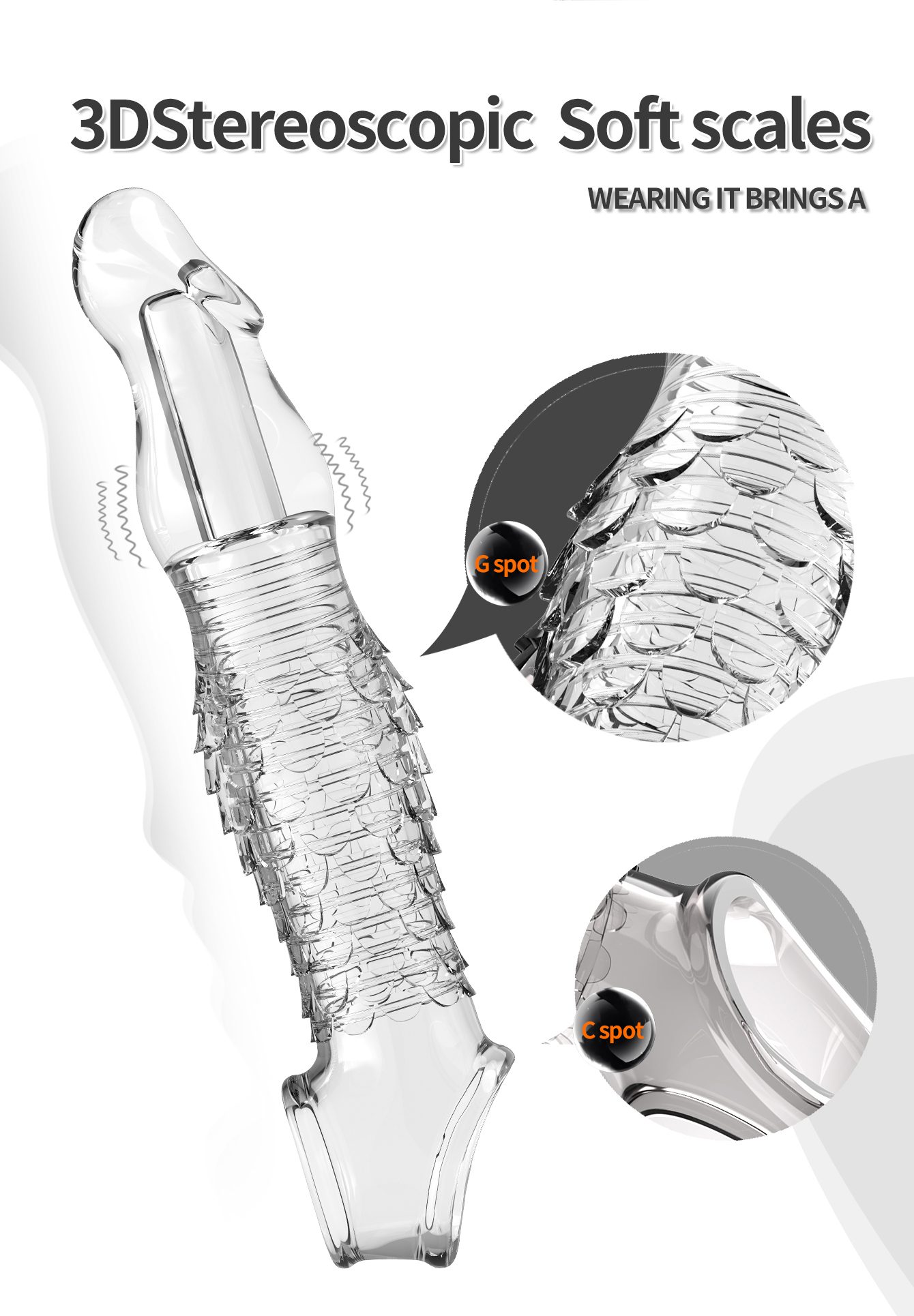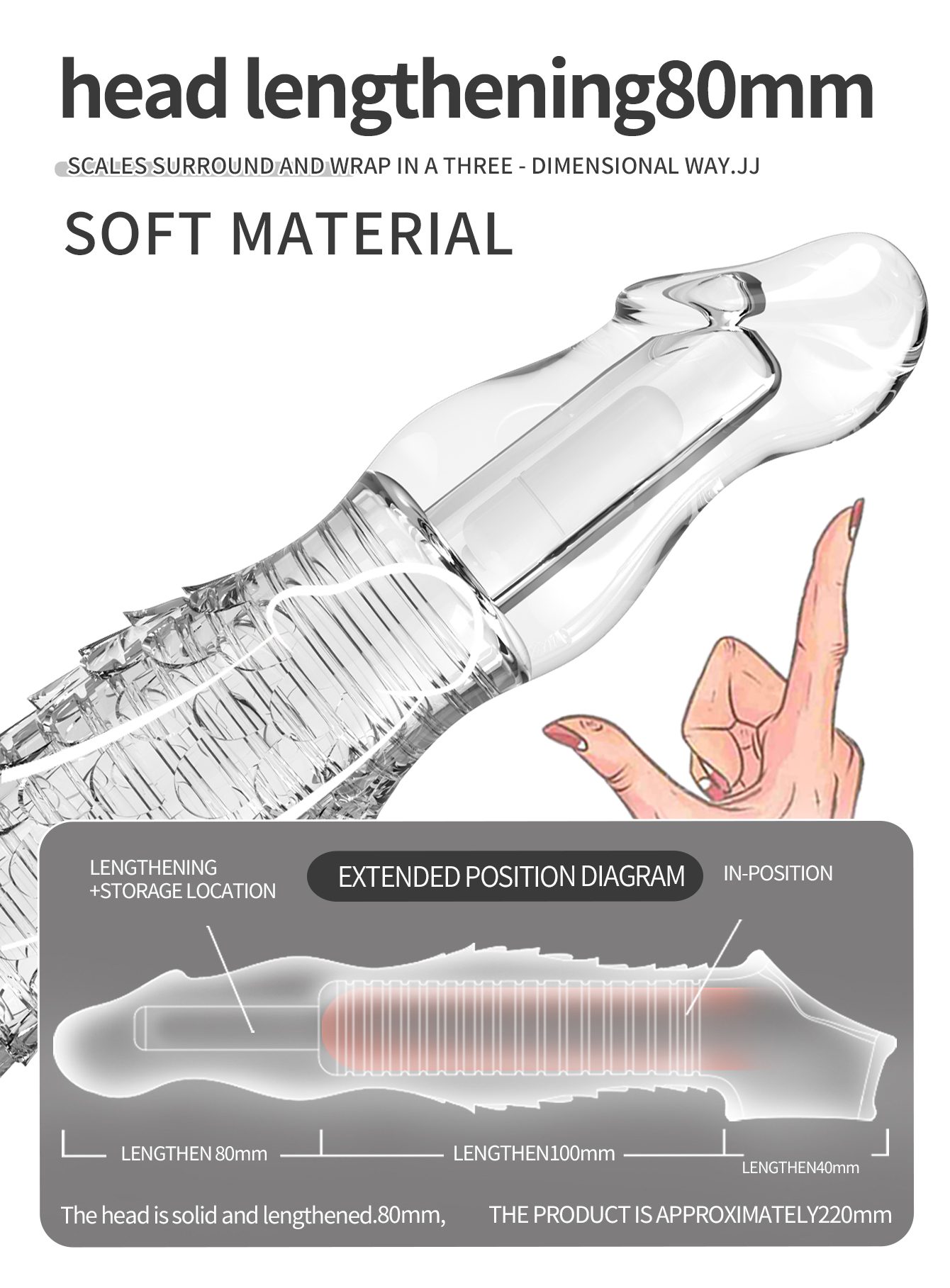 UMP-S9A Reusable Transparent TPE Vagina Stimulating Extended Penis Sleeve